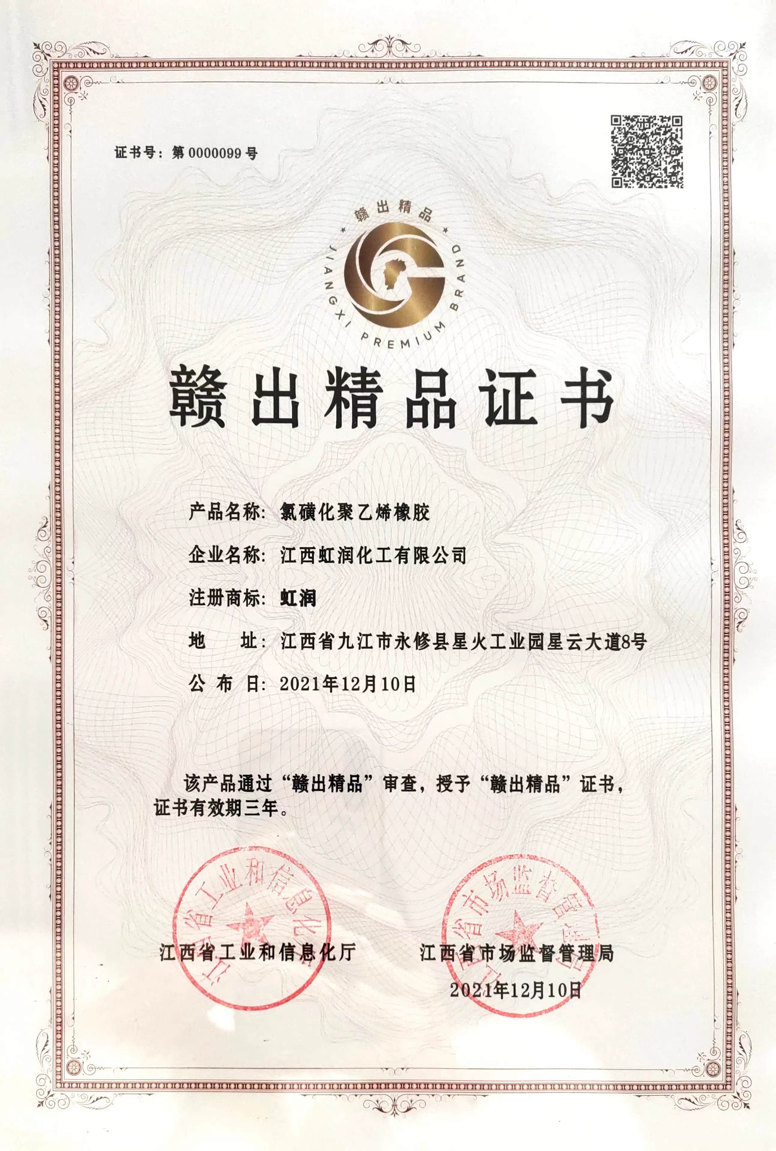 贛出精品證書